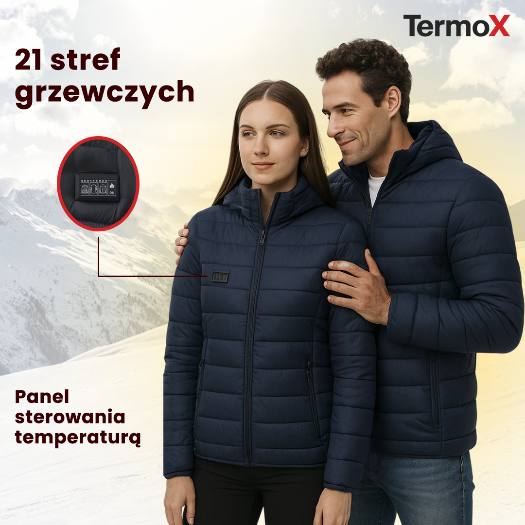Marzniesz zimą? Już nie musisz. TermoX™ otula ciepłem na zawołanie i skutecznie chroni przed chłodem, śniegiem i deszczem bo jest wodoporna . Dzięki 21 strefom grzewczym i 3 poziomom ogrzewania możesz dopasować ciepło do każdej pogody. Wystarczy podłączyć powerbank i jednym kliknięciem aktywować ogrzewanie. Lekka konstrukcja, nowoczesny wygląd i funkcjonalność sprawiają, że TermoX™ to idealna kurtka na zimowe dni — do miasta, w góry i na codzienne spacery.